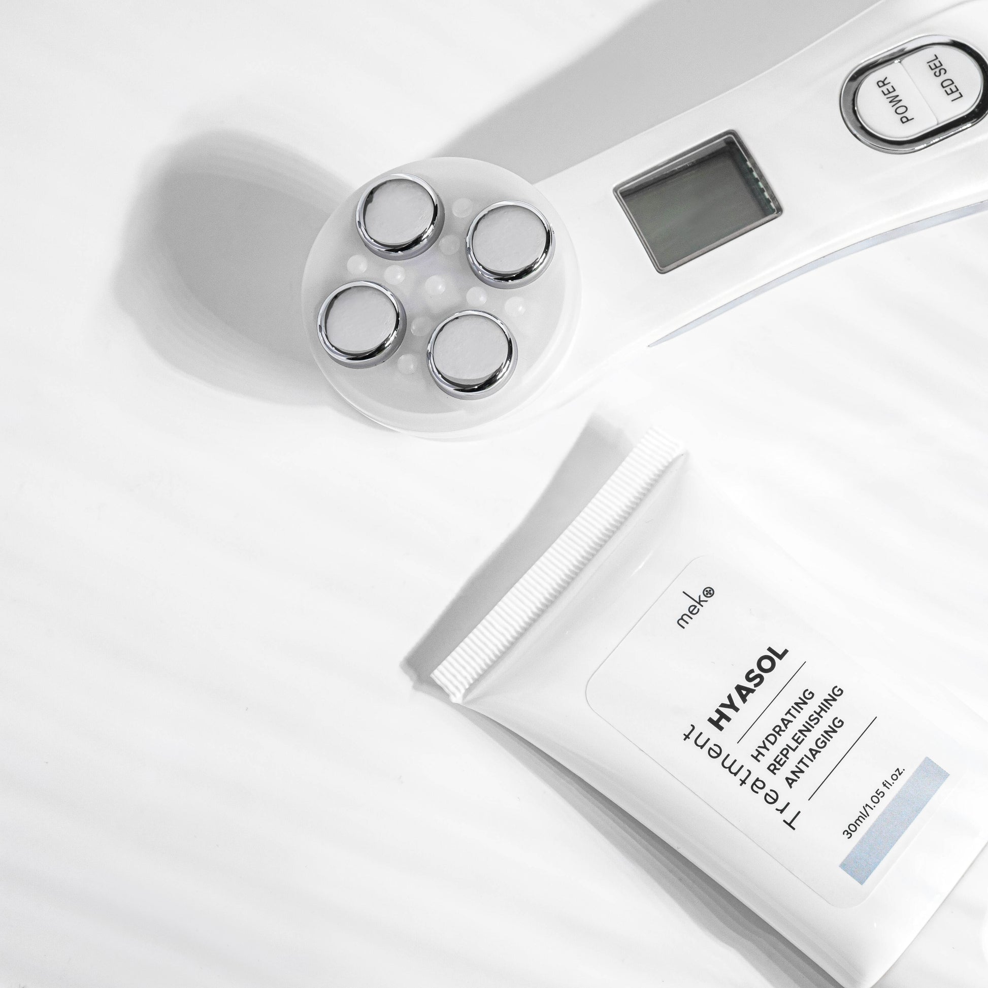 ชุดแพคเกจดูแลผิวหน้าด้วยเครื่องนวดหน้า (RF LED Photon Light Therapy) พร้อมเซตทรีทเมนต์ดูแลผิวหน้า 8 สูตร ขนาดทดลอง